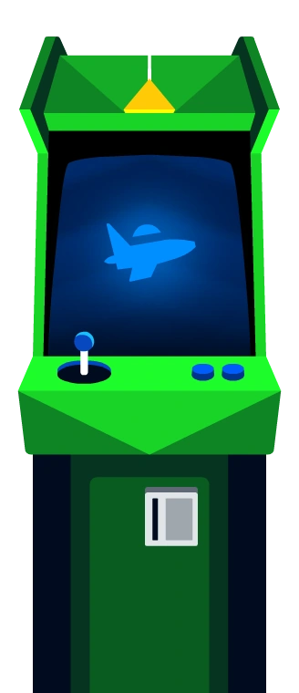 D. Invaders is a Neon Green arcade machine with a Rich Black (FOGRA29) screen.